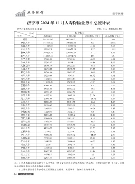 济宁市 2024 年 11 月人寿保险业务汇总统计表